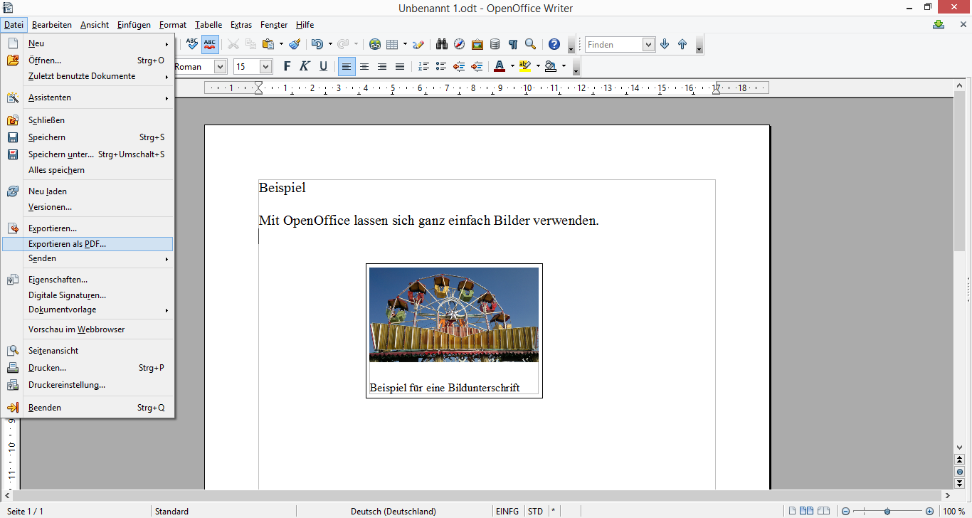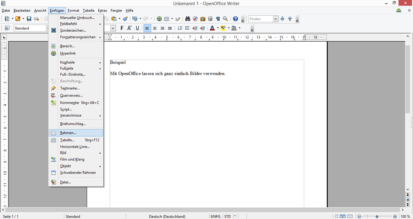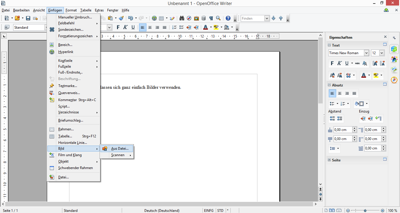 Bilder lassen sich in einem Open Office-Dokument auf verschiedene Arten einfügen: