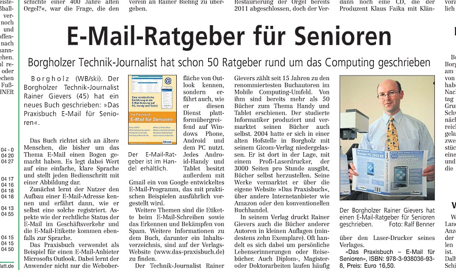 Beispiel für einen Artikel, den eine Lokalzeitung über die Neuerscheinung des Autors Rainer Gievers veröffentlicht hat. Kostenlose Werbung, die man mitnehmen sollte!