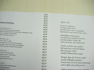 Nach dem Druck, in Farbe oder schwarzweiß, binden wir nach Ihren Wünschen. Dazu verwenden wir in der Regel als Vorschaltseite eine Klarsichtfolie, sowie einen Karton als letzte Seite, um die Haltbarkeit zu erhöhen.